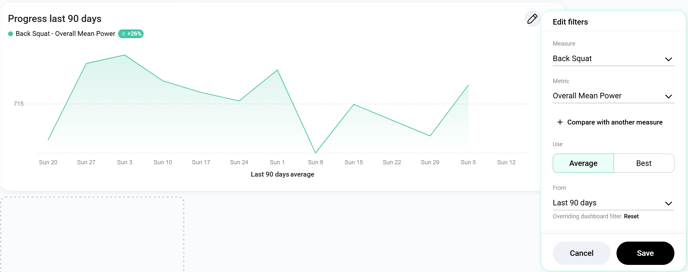 ) on the top right of the widget, you can edit the widget to change the displayed measure, metric, the data source (average or best), and the time period shown. This ensures the graph reflects the most relevant data for your analysis.